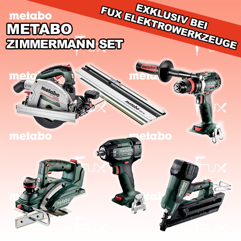 Das Ladenlokal bleibt vom 25. Dezember 2025 bis am 04. Januar 2026 geschlossen. Bestellungen und Lieferungen von Neugeräten werden trotz Ferienabwesenheit in gewohnter Fux-Manier entgegengenommen und ausgeliefert. Heute auf dieses Produkt 27% Rabatt! Zu "Zimmermann Set" von Metabo FULL Service: 36 Monate zum Nulltarif für Sie! Weitere Infos zum FULL Service Dieses Produkt ist CAS kompatibel! Weitere Infos zu CAS David gegen Goliath Aktionen FUX SPECIAL EXKLUSIV BEI FUX Metabo Zimmermann SET 10 SOLO Bestell- und Artikelnummer: Zimmermann SET 10 SOLO BS 18 LTX BL Q I Akku-BohrschrauberAkkuspannung 18 V Drehzahl 0-550 / 0-2000 U/min Drehmoment hart / weich 130 / 65 Nm Gewicht (mit Akkupack) 2.3 kgInfos SSW 18 LTX 550 BL Akku-SchlagschrauberAkkuspannung 18 V Anziehdrehmoment 550 Nm Werkzeugaufnahme 1/2" Gewicht ohne Akkupack 1,4 kgInfos NFR 18 LTX 90 BL Akku NaglerAkkuspannung 18 V Nagelstreifen Winkel 30 - 34 ° Nagellänge 50 - 90 mm Nageldurchmesser 2,9 - 3,3 mm Gewicht ohne Akkupack 4,1 kgInfos HO 18 LTX 20-82 Akku-Einhand-HobelAkkuspannung 18 V Hobelbreite 82 mm Spanabnahme einstellbar 0-2 mm Gewicht 3.5 KgInfos KS 18 LTX 66 BL Akku HandkreissägeAkkuspannung 18 V Schnitt-Tiefe bei 90° 0-66 mm Sägeblatt 165 mm Gewicht 4.5 kgInfos Kappschiene KFS 44Gesamtlänge 834 mm Schnittlänge 440 mmInfos Registriere die in diesem Set vorhandenen Metabo Maschinen auf metabo.ch, und ergattere dir bis zu 5 Gratis Akkus!Zusätzlich offerieren wir zu diesem Set einen Gratis Akku!OHNE AKKUS UND LADEGERÄT Standard-Ausrüstung In diesem Set enthalten: BS 18 LTX BL Q I Akku-Bohrschrauber SSW 18 LTX 550 BL Akku-Schlagschrauber NFR 18 LTX 90 BL Akku Nagler HO 18 LTX 20-82 Akku-Einhand-Hobel KS 18 LTX 66 BL Akku Handkreissäge Kappschiene KFS 44 Listenpreis CHF 2'253.50 Fuxpreis CHF 1'629.00 inkl. 8.1% MwSt, inkl vRG Versand CHF 25.00 Kein Grauimport! Produkt bestellen 1 Stück 2 Stück 3 Stück 4 Stück 5 Stück 6 Stück 7 Stück 8 Stück 9 Stück 10 Stück Alle Angaben ohne Gewähr und solange Vorrat reicht!Wiederverkäufer werden? Produkt als PDF NEUHEITAKTION 27%