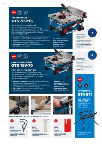 Kreiss%u00e4geblatt f%u00fcr Akkus%u00e4gen Expert for Wood2 608 644 521216%u2009%u00d7%u20091,7/1,2%u2009%u00d7%u200930%u2009mm, 48 Z%u00e4hneKreiss%u00e4geblatt f%u00fcr Akkus%u00e4gen maximiert die Akkulaufzeit92.30* CHFKreiss%u00e4geblatt Expert for Wood2 608 642 497%u2205 216%u2009mm Schnittbreite: 2,4%u2009mm Blattst%u00e4rke: 1,8%u2009mm, 48 Z%u00e4hneDie Extra Hard MicroteQZ%u00e4hne (Bosch Eigenproduktion) f%u00fcr lange Haltbarkeit92.30* CHFTISCHKREISS%u00c4GEGTS 70-2160%u2005601%u2005B30%u2005630 / 746.00* CHFmit Kreiss%u00e4geblatt, Parallelanschlag, Winkelanschlag, Profilschiene mit Anschlag, Schutzhaube, Schiebestock, Schl%u00fcsselServicekategorie: D%u25fe Kompakt & kabellos: einfacher Transport und 70 mm Schnitth%u00f6he bei kabelloser Freiheit%u25fe Pr%u00e4zision: pr%u00e4zise Schnitte dank zahnstangengef%u00fchrtem Anschlag und pr%u00e4zisem Winkelanschlag%u25fe Gesundheit: Zwei-Punkt-Staubabsaugung mit Click&Clean-Schnittstelle%u25fe Kompaktheit & Leistung: kompaktes Design f%u00fcr einfachen Transport und klassenbeste Schnitth%u00f6he von 70 mm%u25fe Pr%u00e4zision: pr%u00e4zise Schnitte dank zahnstangengef%u00fchrtem Anschlag und pr%u00e4zisem Winkelanschlag%u25fe Gesundheit: Zwei-Punkt-Staubabsaugung mit Click&Clean-SchnittstelleGewicht: 21 kgSchnitth%u00f6he: 70%u2009mmMax. Schnittkapazit%u00e4t rechts: 635%u2009mmEmpfohlene Akkus: EXBA18V-55/-80/-150Schnitth%u00f6he: 70%u2009mmMax. Schnittkapazit%u00e4t rechts: 635%u2009mmLeistung: 1.850%u2009WGewicht: 22%u2009kgTragf%u00e4higkeit: 85%u2009kgGewicht: 6,3%u2009kgUNTERGESTELL GTA 5710%u2005601%u2005B22%u2005800 / 108.00* CHFkompatibel mit: GTS 70-216, GTS 18V-70 Click&CleanStaubbeutel2 608 001 231Click&Clean-Einsatz f%u00fcr staubreduziertes Arbeiten21.05* CHFZero Clearance Einsatz 2 608 001 229Sorgt f%u00fcr pr%u00e4zise und splitterfreie Schnitte15.75* CHFY-Schlauch Staubanschluss-Set2 608 001 227Zwei Absaug%u00f6ffnungen f%u00fcr staubreduziertes Arbeiten78.90* CHFKompatibel mit GTS 70-216 sowie GTS 18V-70AKKU-TISCHKREISS%u00c4GEGTS 18V-700%u2005601%u2005B44%u2005100 / 964.00* CHF mit Kreiss%u00e4geblatt, Parallelanschlag, Winkelanschlag, Profilschiene mit Anschlag, Schutzhaube, Schiebestock, Schl%u00fcssel Servicekategorie: DNEU!NEU!NEU!NEU! NEU! NEU!6
