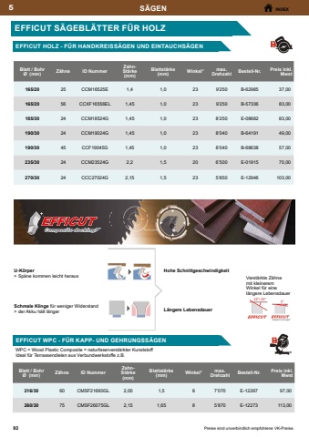 3 44BOHRENINDEXPreise sind unverbindlich empfohlene VK-Preise.HSS-G BOHRER (HIGH QUALITY)Hochqualitativer HSS-G Bohrer f%u00fcr Profianforderungen. Spitzwinkel 130%u00b0 - Kreuzanschliff nach DIN 1412CGeeignet f%u00fcr Stahl, Stahlguss legiert und unlegiert bis < 950 N/mm2 Zugfestigkeit, NE-Metalle, Edelstahl und Aluminium.HSS-G BOHRER MIT RUNDSCHAFTBohrer %u00d8 (mm)Gesamt,l%u00e4nge (mm)Stk/PkgBestell-Nr.Preis inkl. Mwst1,5401D-096561,001,54010D-062365,002,0491D-096621,002,04910D-062585,002,5571D-096782,002,55710D-062707,003,0611D-096842,003,06110D-062928,003,5701D-096902,003,57010D-0631710,004,0751D-097092,004,07510D-0633914,004,5801D-097153,004,58010D-0635115,005,0861D-097213,005,08610D-0637318,005,5931D-097373,005,59310D-0639522,006,0931D-097433,006,09310D-0641027,006,51011D-097594,006,510110D-0643231,00Bohrer %u00d8 (mm)Gesamt,l%u00e4nge (mm)Stk/PkgBestell-Nr.Preis inkl. Mwst7,01091D-097655,007,010910D-0645438,007,51091D-097715,007,510910D-0647641,008,01171D-097876,008,011710D-0649851,008,51171D-097936,008,51175D-0651328,009,01251D-098027,009,01255D-0653533,009,51251D-098188,009,51255D-0655739,0010,01331D-098249,0010,01335D-0657943,0010,51331D-098309,0011,01421D-0984611,0011,51421D-0985212,0012,01511D-0986814,0012,51511D-0987414,0013,01511D-0988016,0014,01601D-7489328,0015,01691D-7490232,0016,01781D-7491836,00METALLBOHRERHSS-G COBALT (8%) (HIGH QUALITY) MIT RUNDSCHAFTBohrer %u00d8 (mm)Gesamtl%u00e4nge (mm)Stk/PkgBestell-Nr.Preis inkl. Mwst1,03410P-61846-1017,001,54010P-61868-1024,002,04910P-61880-1026,002,55710P-61905-1028,003,06110P-61927-1029,003,57010P-61949-1030,004,07510P-61961-1040,004,58010P-61983-1041,005,08610P-62000-1051,005,59310P-62022-1067,006,09310P-62044-1068,006,510110P-62066-1077,00Bohrer %u00d8 (mm)Gesamtl%u00e4nge (mm)Stk/PkgBestell-Nr.Preis inkl. Mwst7,010910P-62088-1099,007,510910P-62094-10110,008,011710P-62103-10122,008,51175P-62119-566,009,01255P-62125-567,009,51255P-62131-568,0010,01335P-62147-570,0010,51335P-62153-572,0011,01425P-62169-575,0011,51425P-62175-578,0012,01515P-62181-580,0012,51515P-62197-582,0013,01515P-62206-585,00Mit Kobaltlegierung. Der Kobaltanteil sorgt f%u00fcr eine h%u00f6here Warmh%u00e4rtebest%u00e4ndigkeit. Geeignet f%u00fcr legierte und unlegierte St%u00e4hle, Edelstahl, Gusseisen, Aluminium, Aluminiumlegierungen, Kupfer, Messing und Bronze.Hochqualitativer HSS-G Kobalt 8% Bohrer nach DIN 338 f%u00fcr Profianspr%u00fcche. Spitzwinkel 130%u00b0 - Kreuzanschliff DIN 1412C. St%u00e4hle bis < 1400 N/mm2 Zugfestigkeit