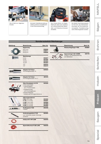 21MAFELLS%u00e4genSchleifenHobelnFr%u00e4senSaugenSpezialBohrenSonderzubeh%u00f6r/WerkzeugeStammblattdickeVerzahnte L%u00e4ngeZahnteilungMaterialst%u00e4rkePackungsinhaltMassivholzPlattenwerkstoffe roh (Span-/Tischlerplatten ...)Plattenwerkstoffe beschichtet/furniert Bauholz mit MetallrestenLaminatpaneele, ParkettGips-/Zementfaserplatten (Fermacell ...)Melaminharzplatten (Trespa, Resopal ...)Faserzement (Eternit ...)Kunststoffe weichAcryl (Plexiglas ...)Kunststoffefaserverst%u00e4rkt GFKE-Metalle/BuntmetalleAlu-VerbundplattenAluminiumCUnex W1 WOOD High Precision 0936763754%u2264 642%u2022%u2022W2 WOOD 0937011,7754%u2264 645%u2022%u2022W3 WOOD0937021,71254%u2264 1145%u2022%u2022W4 WOOD Progressive0937031,3754 %u2013 5,2%u2264 645%u2022%u2022%u2022W5 WOOD Progressive0937041,5902 %u2013 3%u2264 795%u2022%u2022%u2022W6 WOOD Reverse0937061,5752,5%u2264 645%u2022%u2022%u2022W+P 2 WOOD+PLASTIC0937051,5752,7%u2264 645%u2022%u2022%u2022%u2022%u2022%u2022W+M 2 WOOD+METALProgressive BIM 0937071,31052,4 %u2013 5%u2264 945%u2022%u2022L2 LAMINATE0937081,3601,7%u2264 155%u2022M2 METAL Progressive BIM0937091551,1 %u2013 1,5%u2264 35%u2022%u2022%u2022E+F 2 EPOXY+FIBER HM0937101,2754,3%u2264 641%u2022%u2022%u2022Bei der neuartigen CUmax S%u00e4geblattspannung dr%u00fcckt ein Keil das S%u00e4geblatt in den Formschluss. Das S%u00e4geblatt sitzt dadurch unverr%u00fcckbar fest.Um die kompromisslose Stabilit%u00e4t der Standard-Grundplatte zu gew%u00e4hrleisten, wurde f%u00fcr die P1 cc eine separate Schwenkplatte entwickelt. Das CUnex W1 besteht aus zwei verl%u00f6teten Einzels%u00e4gebl%u00e4ttern. Dank seiner Stabilit%u00e4t und der Keilform s%u00e4gt es auch Radien pr%u00e4zise und rechtwinklig.F%u00fcr exakt gerade Schnitte l%u00e4sst sich die P1 cc mit der MAFELL F%u00fchrungsschiene F kombinieren.Sortiment 14 x W2, W+P2, W5, W42 x CUnex W1Sortiment 24 x M2, W6, L2, W+M22 x CUnex W1093712093713Parallelanschlag P1-PAinkl. Kreisschneider205448Spanrei%u00dfschutz P1-SS5 St%u00fcck205447Schwenkplatte P1-SPbis +/-45%u00b0 schwenkbar205446