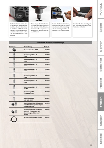 39MAFELLS%u00e4genSchleifenHobelnFr%u00e4senSaugenSpezialBohrenSonderzubeh%u00f6r/WerkzeugeAbbildungBezeichnungBest. Nr.Queranschlag bis 1250 mm (2 St%u00fcck erforderlich)203353F%u00fchrungsschienenVerl%u00e4ngerung 1600f%u00fcr eine Nutzl%u00e4nge von 1600 mmF%u00fchrungsschienenVerl%u00e4ngerung 2600f%u00fcr eine Nutzl%u00e4nge von 2600 mm203752203751S%u00e4geblatt-HM160 x 1,2/1,8 x 20 mm, Z 16, WZ, f%u00fcr L%u00e4ngsschnitte in Holz092539S%u00e4geblatt-HM160 x 1,2/1,8 x 20 mm, Z 24, WZ, f%u00fcr universellen Einsatz in Holz092533S%u00e4geblatt-HM160 x 1,2/1,8 x 20 mm, Z 32, WZ, f%u00fcr Feinschnitte in Holz092552S%u00e4geblatt-HM160 x 1,2/1,8 x 20 mm, Z 56, FZ/TZ, f%u00fcr Feinschnitte in Holz092553AbbildungBezeichnungBest. Nr.S%u00e4geblatt-HM160 x 1,2/1,8 x 20 mm,Z 48, FZ/TR, f%u00fcr Schichtstoffplatten (Trespa)092569Diamants%u00e4geblatt-Set160 x 2,4/3,0 x 20 mm, Z 4, inkl. Spaltkeil f%u00fcr zementgebundene WerkstoffeS%u00e4geblatt-Diamant160 x 2,4/3,0 x 20 mm, Z 4, FZ/TR, f%u00fcr zementgebundene Werkstoffe203640092474Durch den motorischen S%u00e4ge vorschub und die EinMann-Bedienung lassen sich Platten werkstoffe schnell und einfach bearbeiten.Stellrad zur Einstellung der Drehzahl auf verschiedene Werkstoffe.Das perfekte System f%u00fcr alle Plattenwerkstoffe von z. B. Span- bis Zementfaserplatten.%u00dcber den MAFELL-Sauger S 50 M und den integrierten Absaugkanal werden Staubpartikel fast vollst%u00e4ndig abgesaugt.
