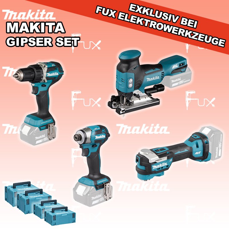 Makita Gipser Set 4 SOLO DDF484ZJ Akku-Bohrschrauber DTD173Z Akku-Schlagschrauber DTM52Z Multifunktions Werkzeug DJV18ZJ Akku-Stichsäge MAKPAC Gr. 3 Einsatz für DTM52 MAKPAC Gr. 2 Einsatz für diverse Schlagschrauber